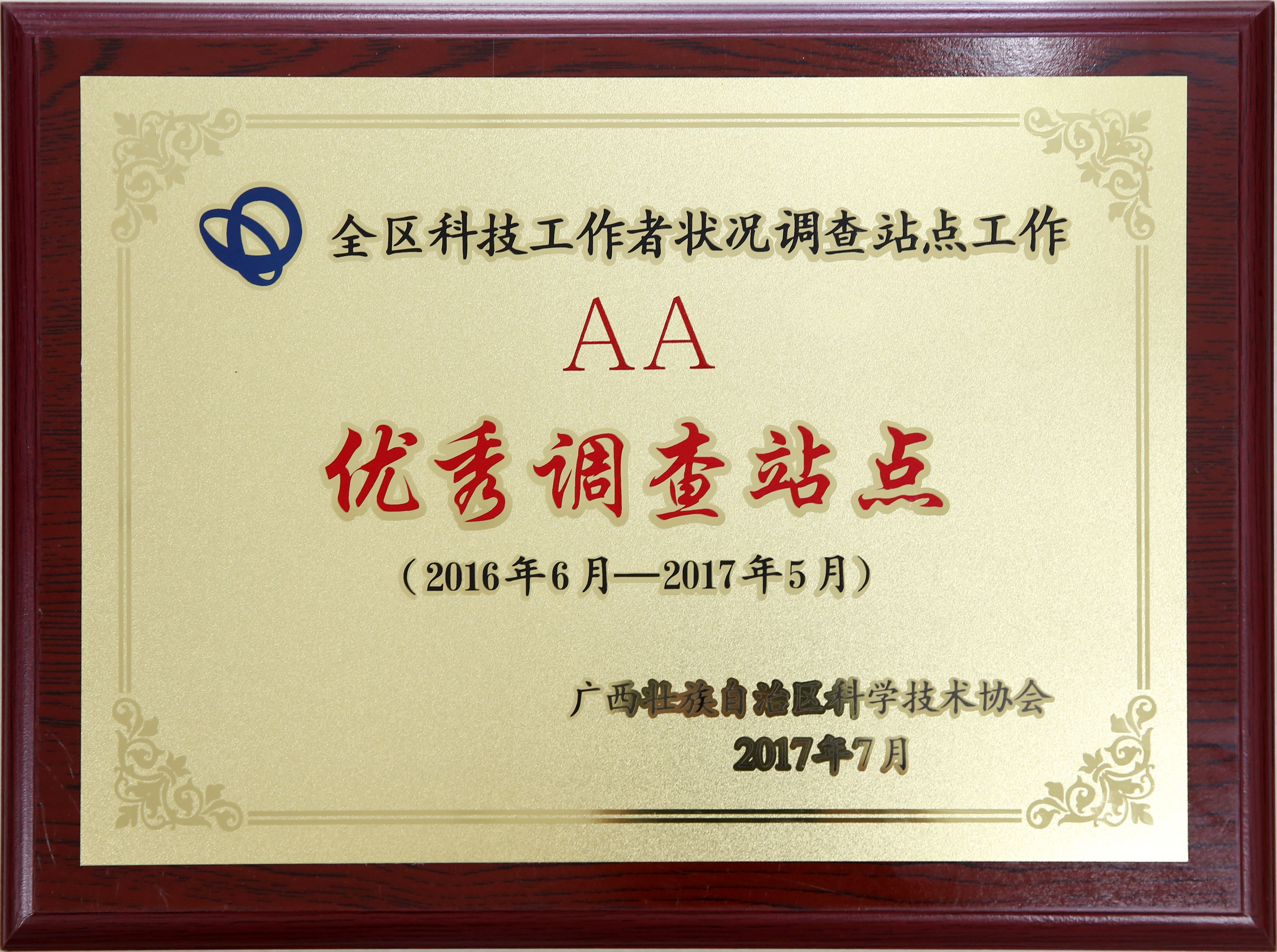 2016年-2017年評為全區(qū)科技工作者狀況優(yōu)秀調查站點