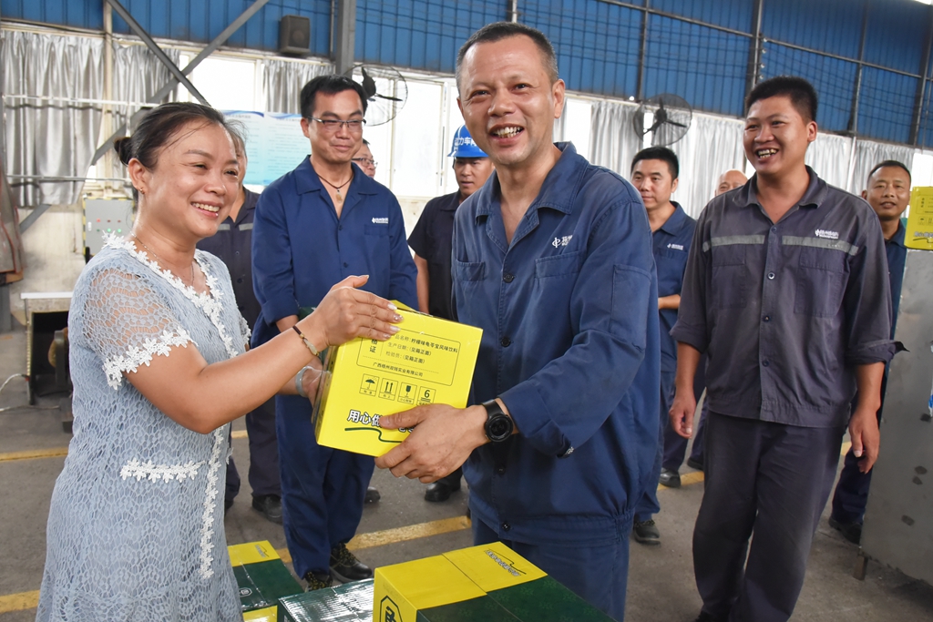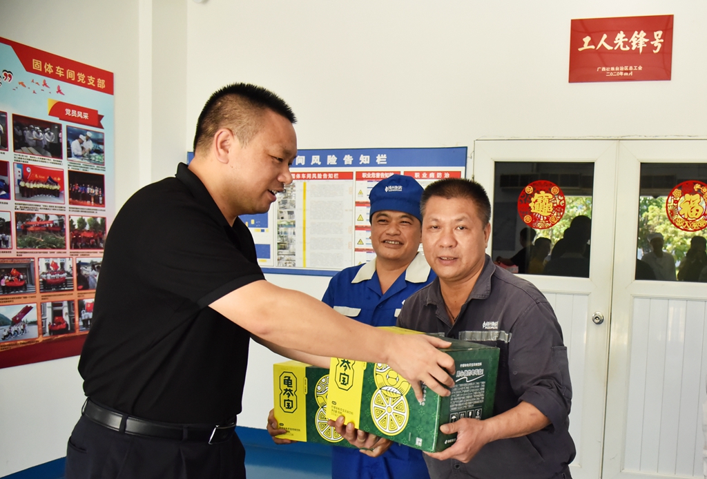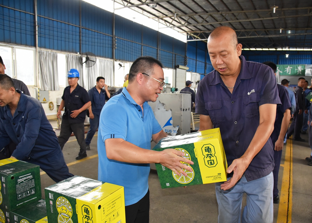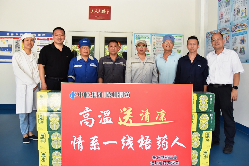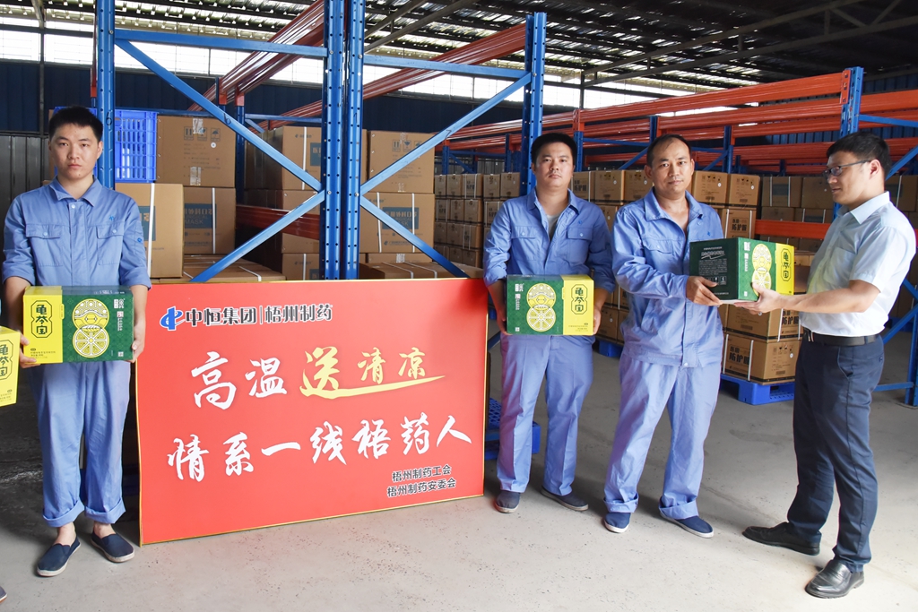 “天氣這么熱,大家辛苦了!”“注意自我保護,記得多喝水!”“崗位都備有防中暑藥品,主任們要留意職工的身體狀態(tài), 合理安排休息?!苯?,梧州制藥領導班子分別帶上清涼飲品,到各車間慰問奮戰(zhàn)在高溫崗位的職工,聲聲叮嚀,讓職工們在盛夏中感受到了陣陣清涼。