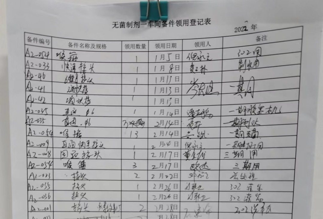 備件室7S管理已初步成形,但還有很大的提升空間。在現(xiàn)有改善成果的基礎(chǔ)上,團(tuán)隊(duì)成員致力于備件室管理規(guī)范化、信息化打造。原來備件物品的借用流程采用紙質(zhì)登記,該種方式存在記錄流程繁瑣、登記時(shí)間長(zhǎng)、信息不明確等問題。針對(duì)該問題,備件室對(duì)A貨架試行草料小程序登記出入庫(kù)流程,提升領(lǐng)取備件的速度。