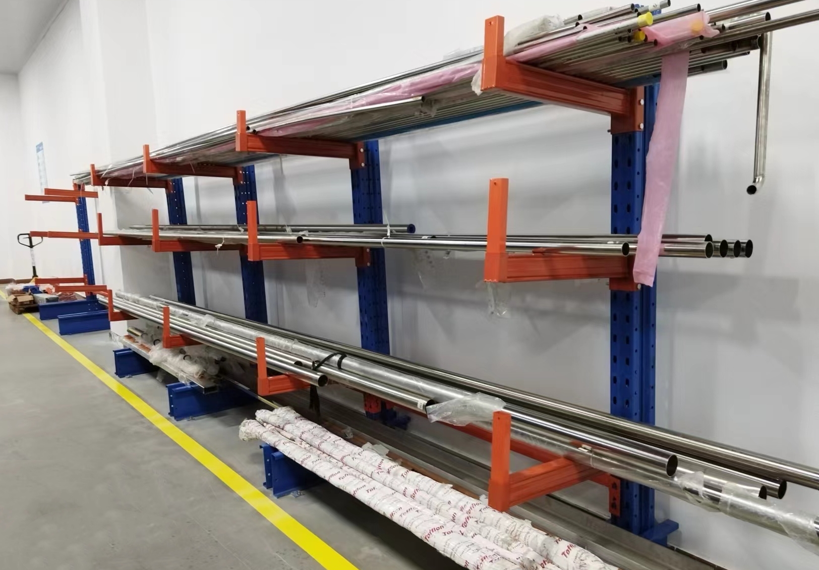 對(duì)于雙面懸臂式貨架不銹鋼管擺放凌亂,鋼管進(jìn)出困難,并影響人員車輛走動(dòng)的問題,團(tuán)隊(duì)通過變更成2個(gè)單面懸臂式貨架,并將貨架移位靠墻壁擺放解決問題。改善后,不銹鋼管進(jìn)出通暢,不影響人員車輛移動(dòng),同時(shí)減少了安全隱患。