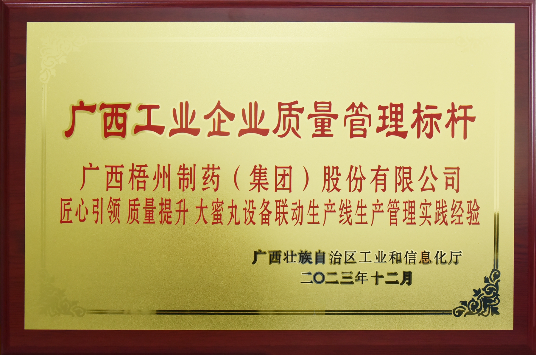 梧州制藥匠心引領(lǐng)質(zhì)量提升大蜜丸設(shè)備聯(lián)動榮獲生產(chǎn)線生產(chǎn)管理實(shí)踐經(jīng)驗(yàn)榮獲廣西工業(yè)企業(yè)質(zhì)量管理標(biāo)桿
