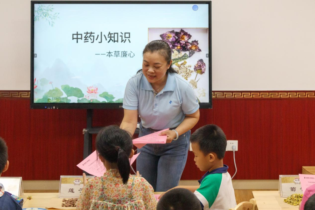 活動(dòng)以朗誦葉劍英家書開篇,家長與孩子深情共讀,勾勒出一幅風(fēng)清氣正的和美畫卷。在“中藥小知識(shí)——本草廉心”小課堂里,工作人員展示淡竹葉、蓮子、荷葉等清心類藥材標(biāo)本,孩子們?cè)诩议L陪伴下觀察形態(tài)、嗅聞氣味、參與趣味問答,感受中醫(yī)藥文化的獨(dú)特魅力,讓古老中醫(yī)藥文化在孩子們心中“鮮活”起來。