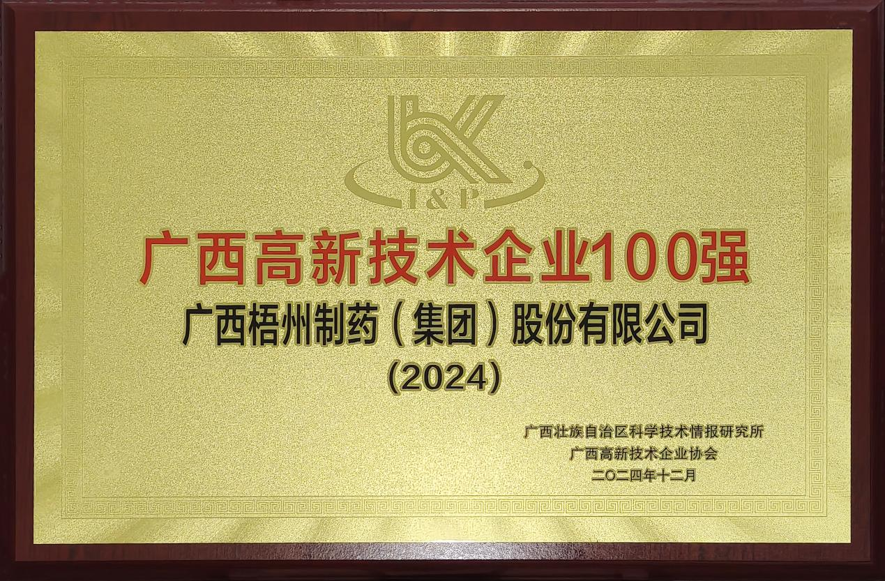 近日,標(biāo)志著“2024年廣西高新技術(shù)企業(yè)百強(qiáng)”榮譽(yù)的官方牌匾,正式送達(dá)廣西梧州制藥(集團(tuán))股份有限公司(以下簡稱:梧州制藥)。這不僅為此次評(píng)選畫上圓滿句號(hào),也意味著梧州制藥成功實(shí)現(xiàn)了自2023年以來的連續(xù)兩年蟬聯(lián),充分彰顯了其穩(wěn)固的創(chuàng)新優(yōu)勢(shì)和行業(yè)競(jìng)爭力。