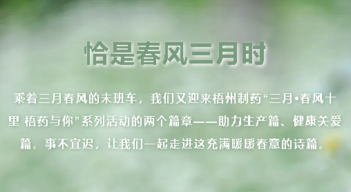 恰是春風(fēng)三月時乘著三月春風(fēng)的末班車,我們又迎來梧州制藥“三月?春風(fēng)十里 梧藥與你”系列活動的兩個篇章——助力生產(chǎn)篇、健康關(guān)愛篇。事不宜遲,讓我們一起走進(jìn)這充滿暖暖春意的詩篇?!局ιa(chǎn)篇】凝聚“志愿紅”協(xié)力助