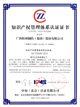 梧州制藥作為制藥企業(yè)將知識產(chǎn)權(quán)放在企業(yè)管理的戰(zhàn)略高度,在2017年4月通過了知識產(chǎn)權(quán)管理體系認(rèn)證。通過貫徹《企業(yè)知識產(chǎn)權(quán)管理規(guī)范》GB/T 29490-2013,公司整合規(guī)范,構(gòu)建了科學(xué)合理的知識產(chǎn)權(quán)管理體系,形成了一套系統(tǒng)適合自身的完整知識產(chǎn)權(quán)管理制度、體系、程序和管理方法。